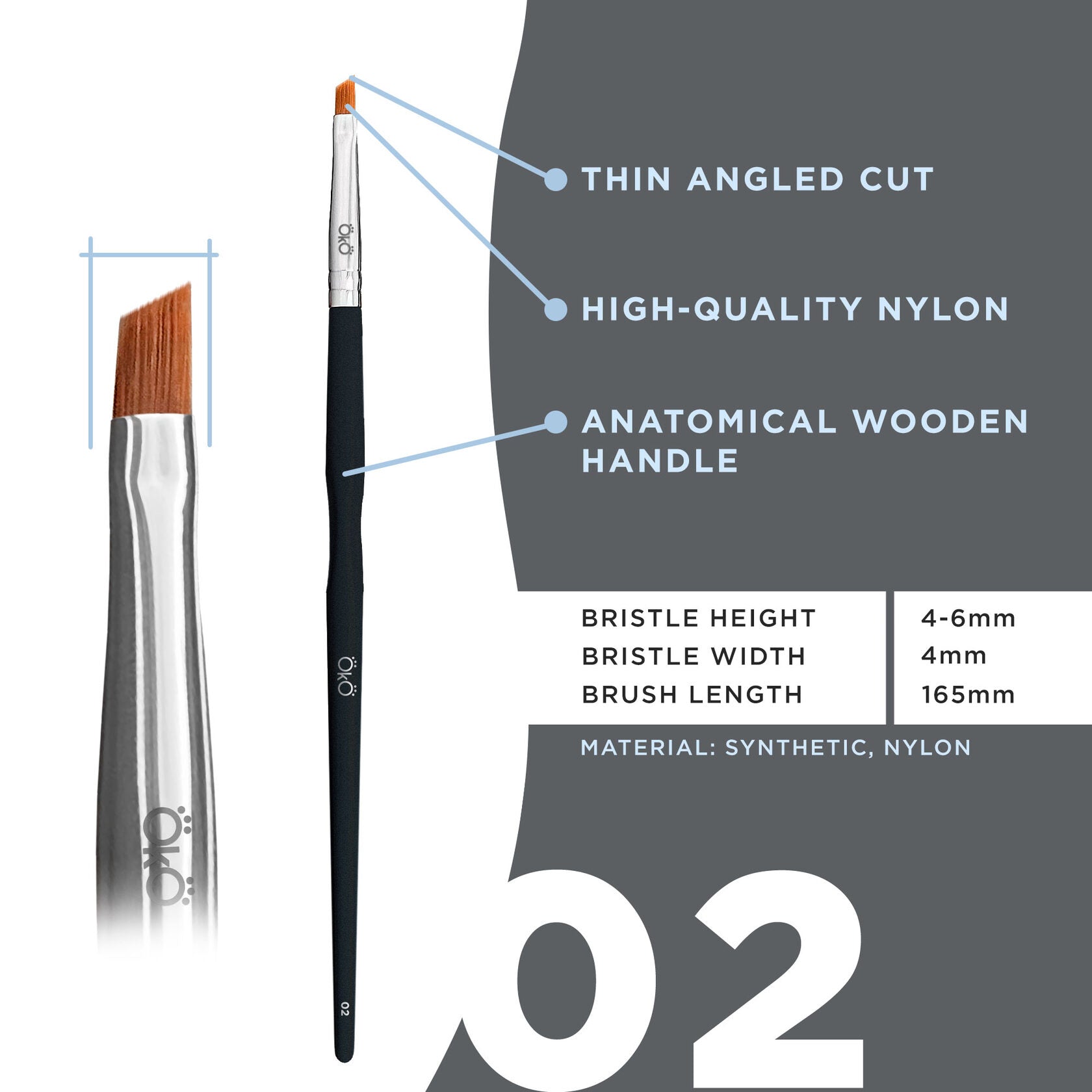 OKO Brush No.2 er perfekt for ultrafine linjer og lagvis farging. Den kompakte størrelsen og den skrå formen gjør det enkelt å jobbe presist i selv de mest krevende områdene av brynene, uten å berøre hårene.